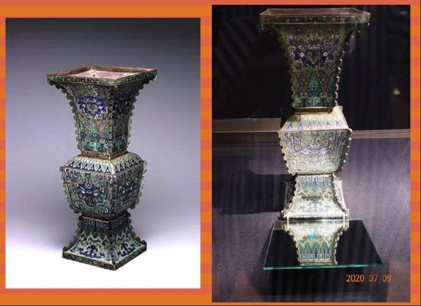 清 銀胎掐絲琺瑯獸面紋方觚