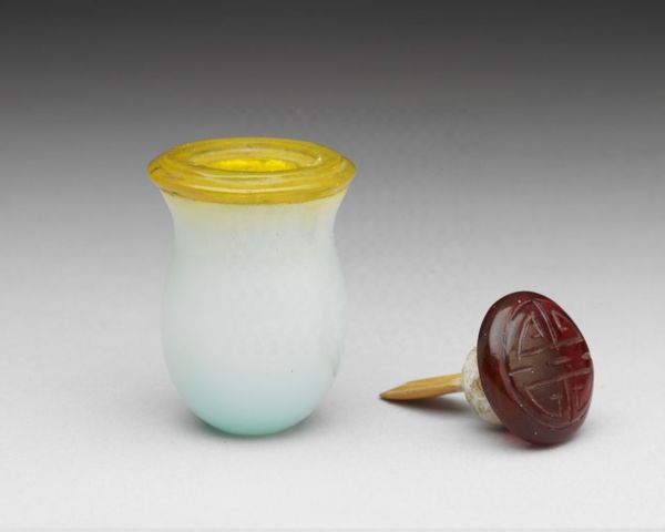 清 十八/十九世紀 淡藍色玻璃鼻煙壺(連蓋高4.3公分、最大徑約2.7公分)