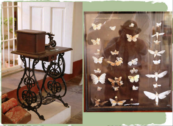 左圖--骨董縫紉機//右圖--王穎老師很認真地拍蝴蝶標本