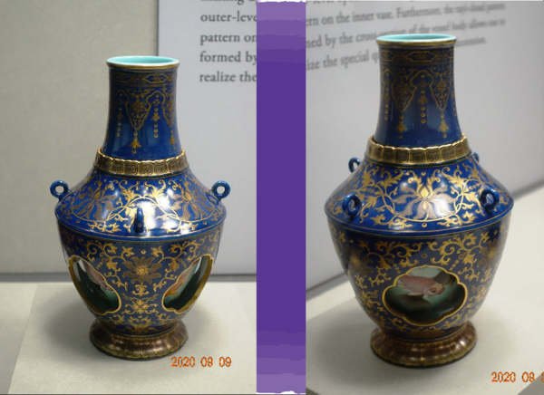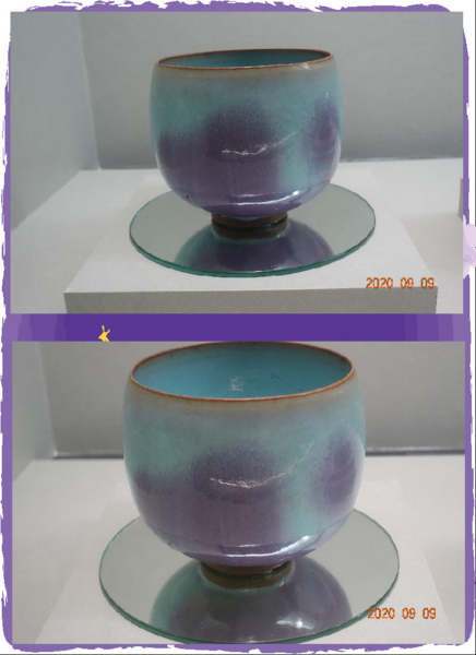 &左上是現場實拍,右下是故宮網圖(兩相比較之下,這個杯子似乎真的變綠了!😅)
