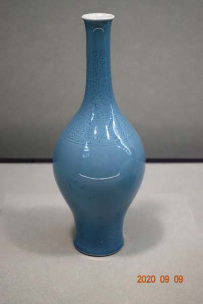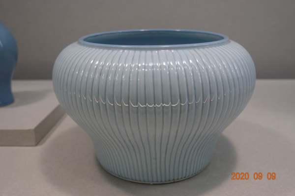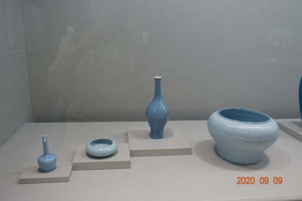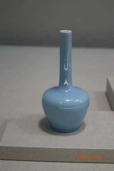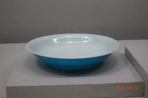 &天藍釉同霽藍一樣也是以氧化鈷為著色劑,但其氧化鈷含量僅為霽藍釉的百分之一,故呈色極為柔和淡雅。