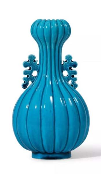 ※清康熙 孔雀藍釉菊瓣蒜頭瓶(網圖)