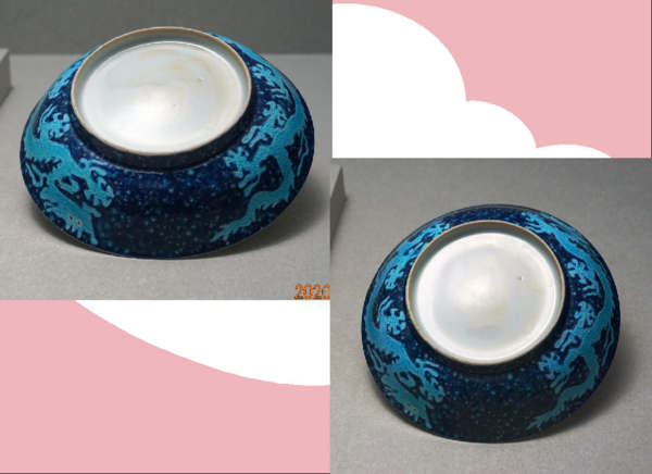 ※明成化 灑藍地孔雀綠釉雲龍紋盤