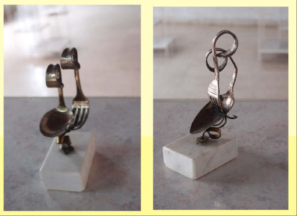 走過路過瞄到的……。(仔細看,他身上有什麼?湯匙、叉子及鑰匙 !)