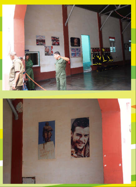 消防局牆上貼著卡斯楚及切.格瓦拉的照片
