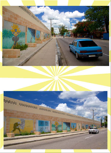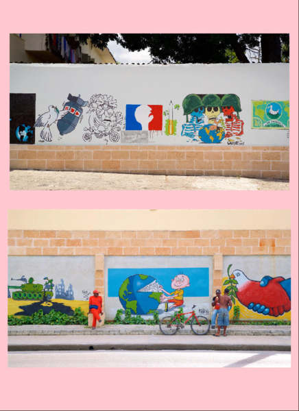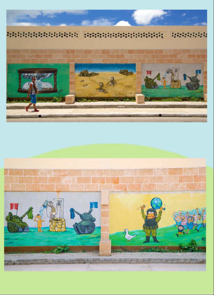 這些塗鴉壁畫是由一群名為Melaíto的漫畫家所製作的公共美術;所有的畫作均為臨時展覽,並定期更改。流行的主題是恐怖主義,戰爭與世界和平。該小組還為當地報紙創建了每月的漫畫版塊。--網圖