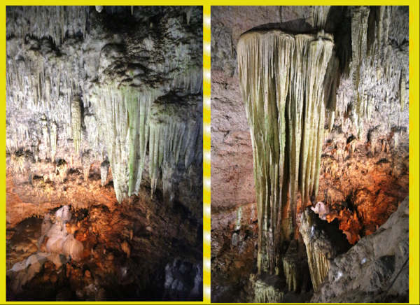 左圖--貝拉馬爾洞穴(Bellamar Caves)除了擁有令人驚嘆的鐘乳石,石筍之外,還擁有僅在此發現的令人難以置信的自然現象--它們是懸掛在鐘乳石上的固態方解石晶體。