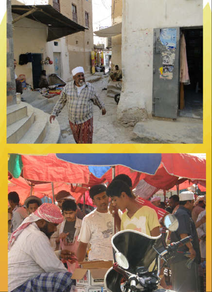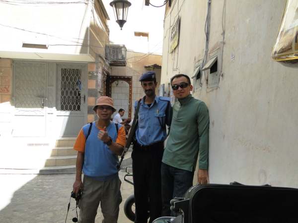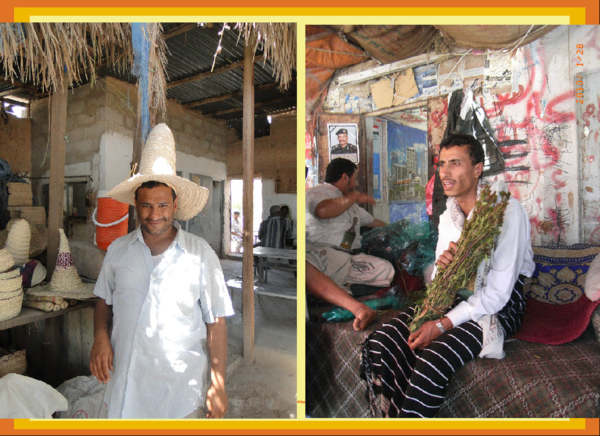 右--我們的在地導遊(因為他名字的諧音,所以我們都稱他〝駱駝先生〞!)他手上捧著的是葉門人絕對不可缺少的卡特(Qat)葉!又稱之為:葉門檳榔!