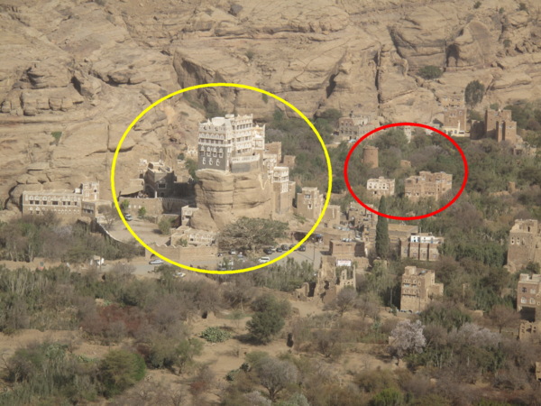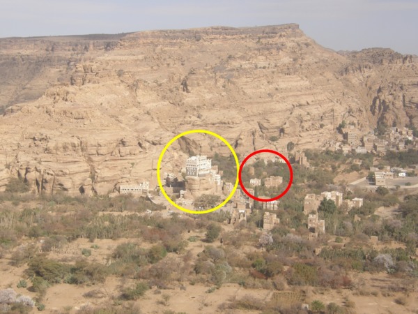 這一集我要介紹的是位於 Wadi Dhaher 地區(距首都薩那西北 15 公里)的“Dar al-Hajar〞(石頭宮) *黃圈即是石頭宮
