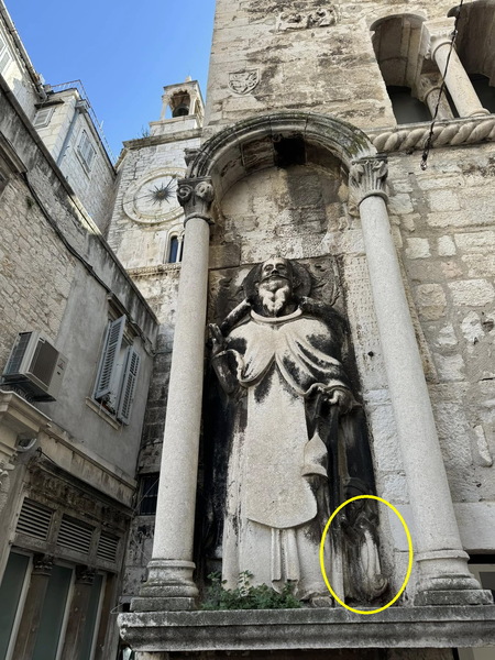 放大了看--在聖安東尼雕像的左腳處蹲著一個小人雕像,據說是雕刻家本人