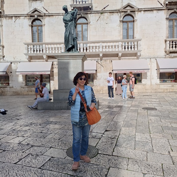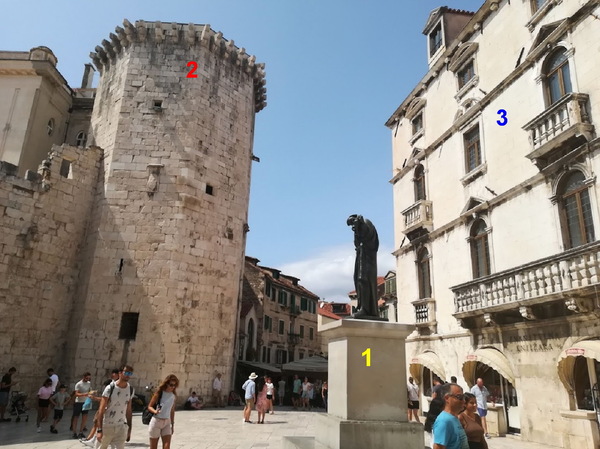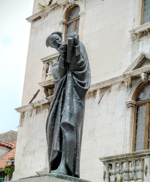 水廣廣場上:1--克羅埃西亞民族詩人馬可‧馬魯里奇 (Marko Marulic)的雕像