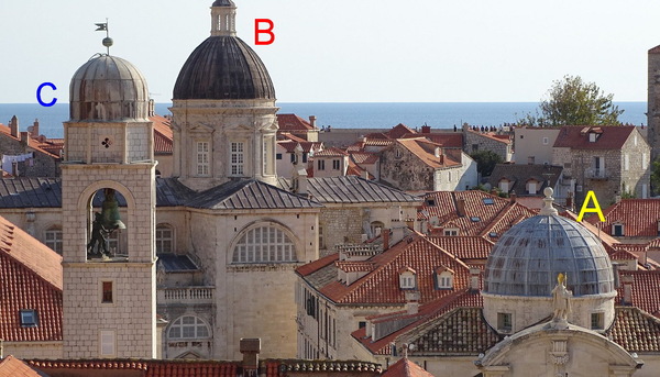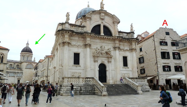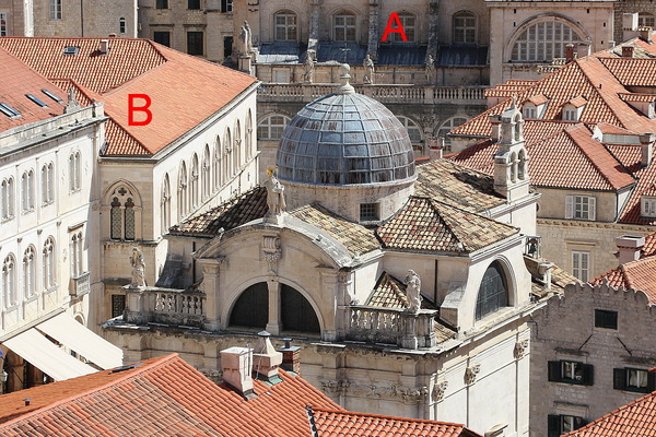 聖布萊斯教堂的空拍照:A是杜布羅夫尼克主教座堂