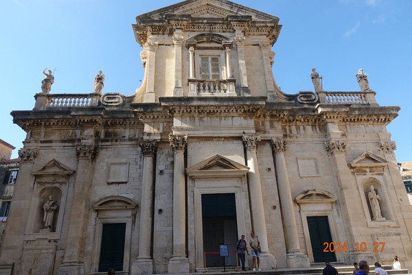根據傳說,這座12 世紀的羅馬式大教堂是由英國國王獅心王理查一世(Richard I)出資建造的;理查一世於1192 年從第三次十字軍東征歸來後在洛克魯姆附近的一次海難中倖存了下來。為了表示感謝,他捐贈了巨款,在杜布羅夫尼克擴建了原教堂,成了亞得里亞海東部第一座羅馬式大教堂。但終究,教堂也逃不了1667年被震毀的命運!而在1991年南斯拉夫內戰期間,教堂也曾經遭到損壞,但也已經得到修復。所以現貌是1713年重建的純巴洛克式的教堂!