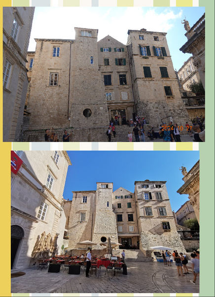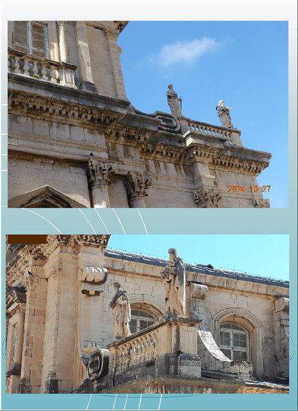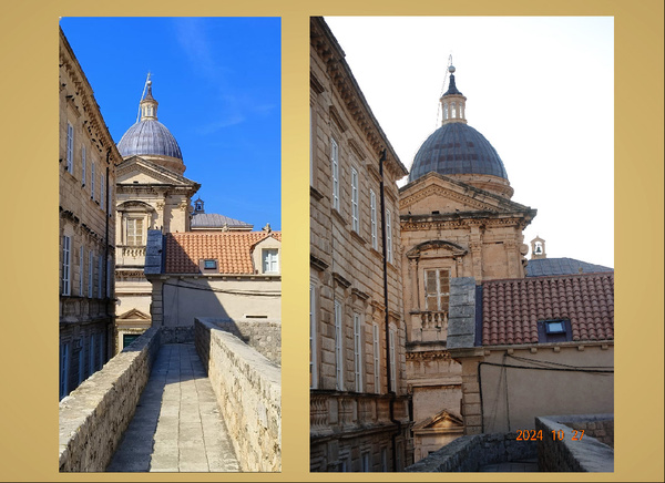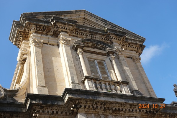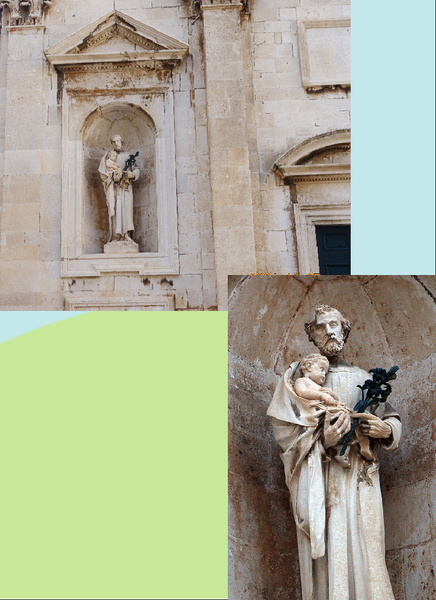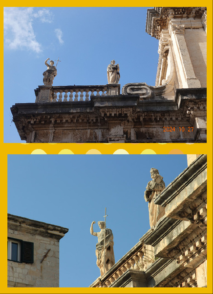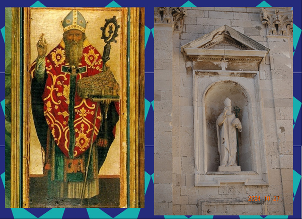 外壁依然有守護神聖布萊斯 (Blaise)的雕像,但這一尊和之前我們看到的不同!祂的腋下夾了一根權杖!而這造型明顯是根據總督宮裡的那幅畫像(左)而製作的!