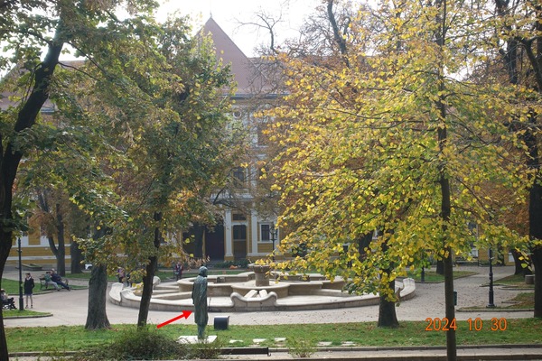 噴水池邊的雕像是柯大宜·佐爾坦 Kodály Zoltán --他是匈牙利的作曲家、民族音樂學家及教育家