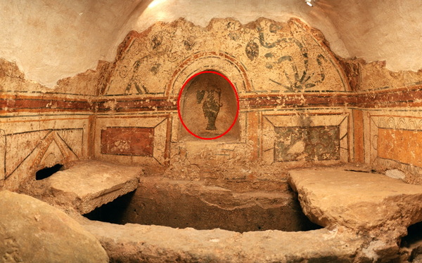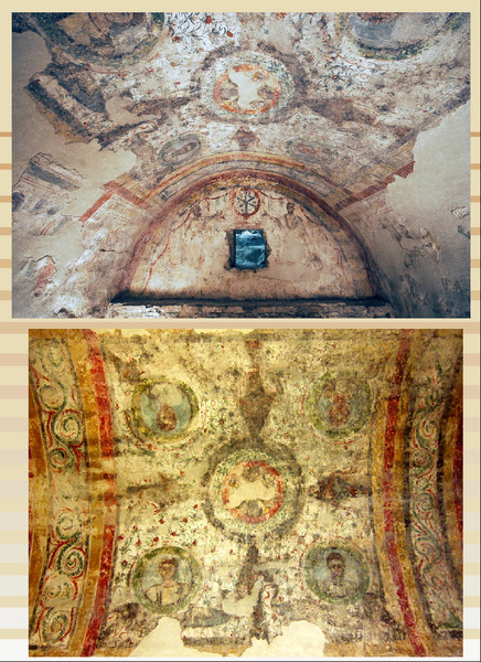 上--聖彼得和保羅墓室的後牆上有藤蔓圖案