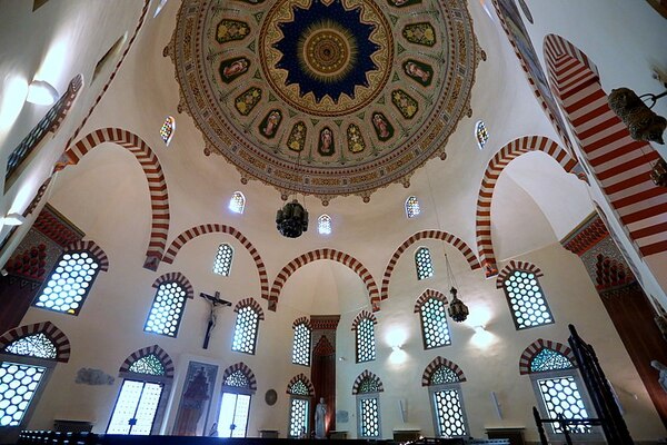 2.16世紀60年代(約莫是在1543 年至1546 年之間)由布達的加齊·卡齊姆帕夏改建為清真寺(教堂被拆毀,用其石頭建造了現在的清真寺;根據普遍的看法,不僅石頭是由教會提供的,而且建造費用也是由教堂內的珍寶資助的。)