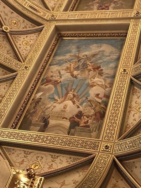 梯廳無論是天花板還是樑柱, 都用了大量的純金打造