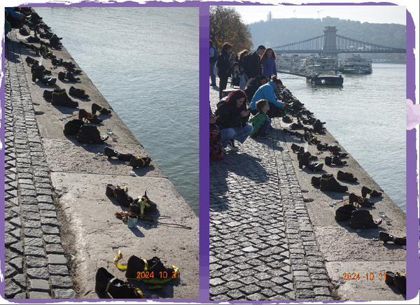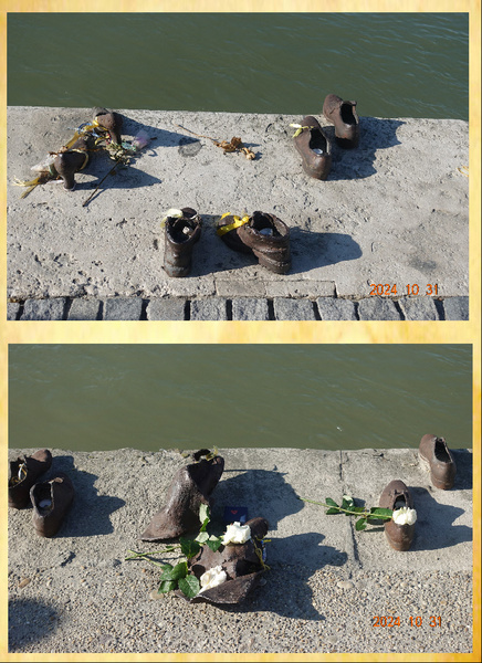 *當時的多瑙河畔是如何行刑的? 1944年12月至1945年1月間,布達佩斯獲得蘇聯軍隊解放前夕,箭十字政權將一群群猶太人與政敵(包含匈牙利人)帶至多瑙河岸邊。 一群一群被捕的人,無論是男性,女性,甚至是兒童,他們似乎都沒有了名字,唯一的名字與標籤是「猶太人」。 站在河邊,他們被要求脫下鞋子、眼鏡、貴重的物品,用鐵鍊綑綁在一起,接著讓這些人面對多瑙河站著,士兵們從背後開槍射擊,但只射擊其中一個人,使其肉身癱軟、失去意識,在墜落河中之際,便將其他人也一併拖進了河中…。光是在此處遭槍擊的人,就有3,500 人,其中 800 位是猶太人。