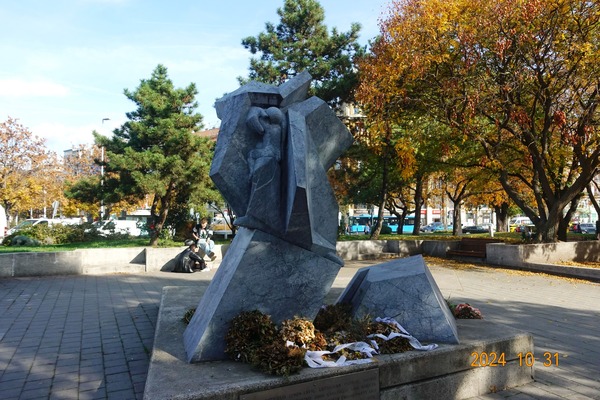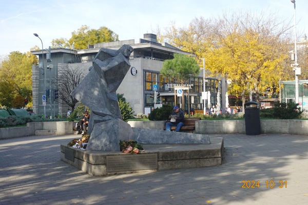 這是迪亞克費倫茨廣場(Deák Ferenc Square)上的加博爾·斯特洛紀念碑(Gábor Sztehlo Memorial)。