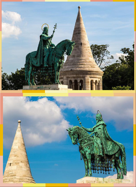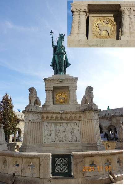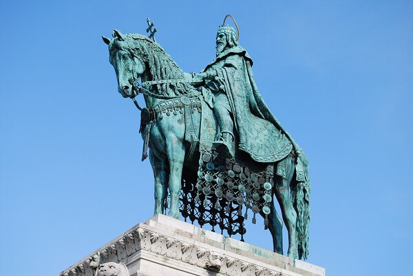 雕像中的聖史蒂芬右手握著雙十字架,象徵著他的基督教政策。
