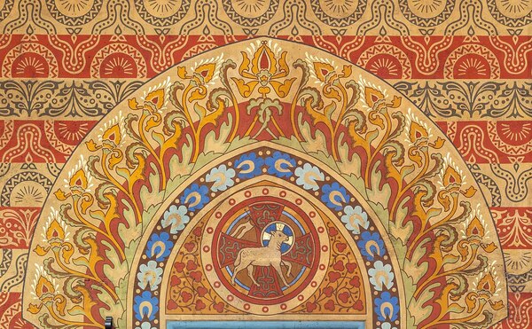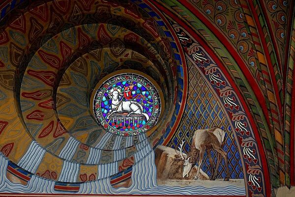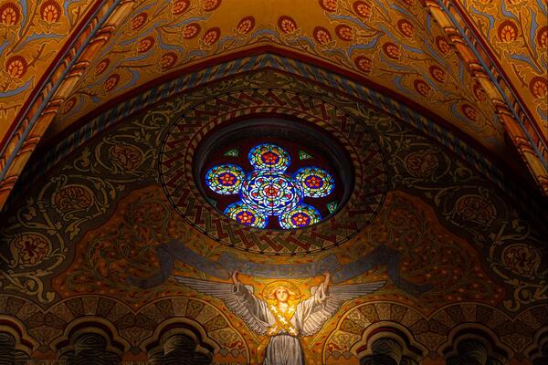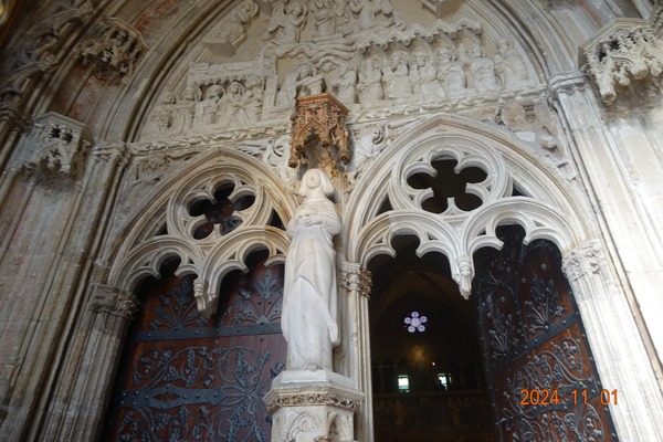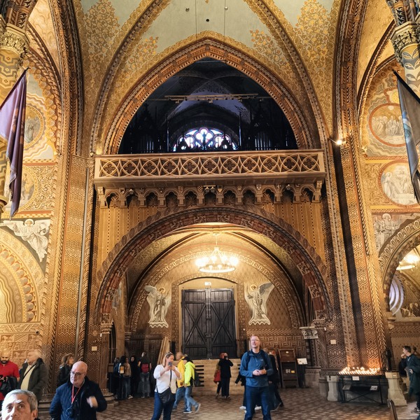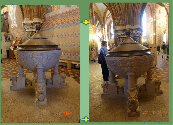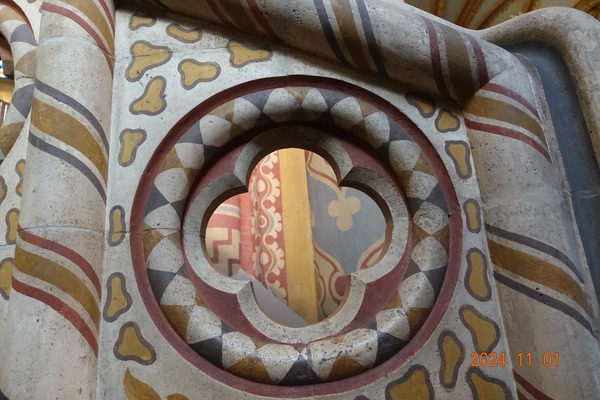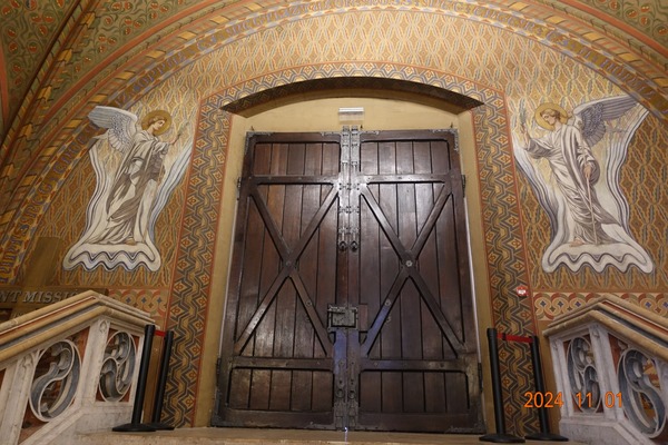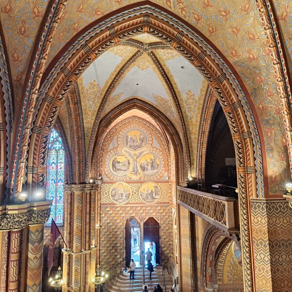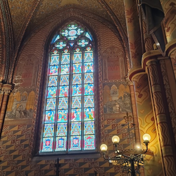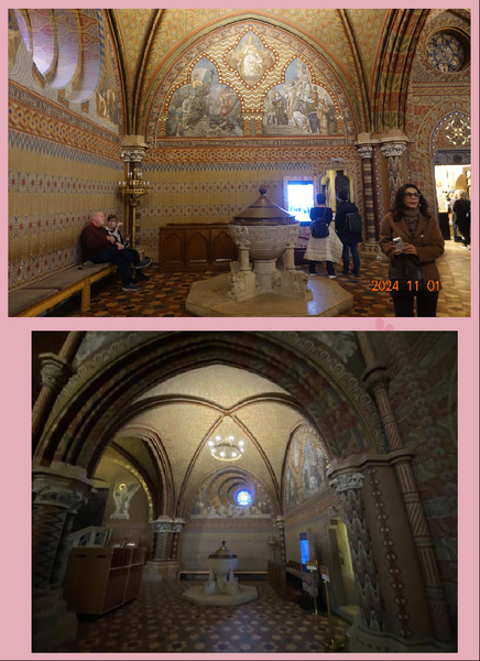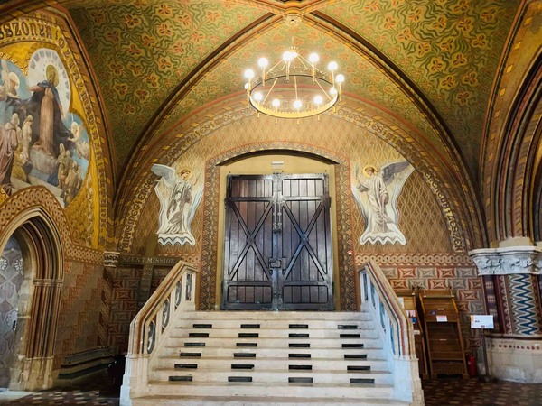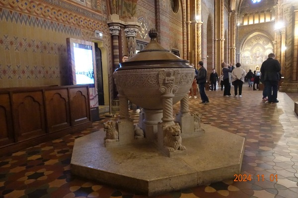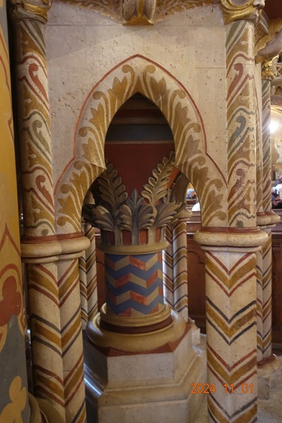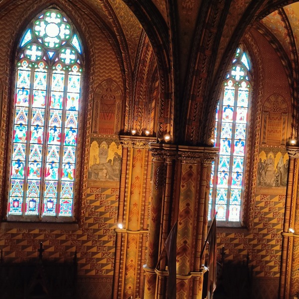 ※這個指著書的僧侶與蓄著鬍子的男人,是教堂內最古早的基石,建於1260年貝拉四世統治時,這是布達佩斯仍留於原址、最古老的石雕作品