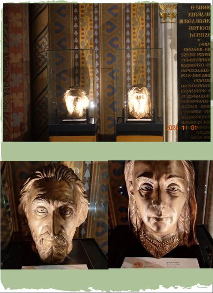 這裡展示了兩個金色面具,它們是匈牙利國王貝拉三世(Béla III)和他的第一任妻子安提阿的阿格尼絲(Agnes of Antioch)墓中發現的遺物