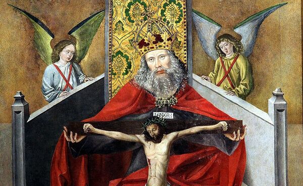 ※這是一幅帶翼祭壇畫,畫面中央是聖父上帝懷抱被釘在十字架上的基督。