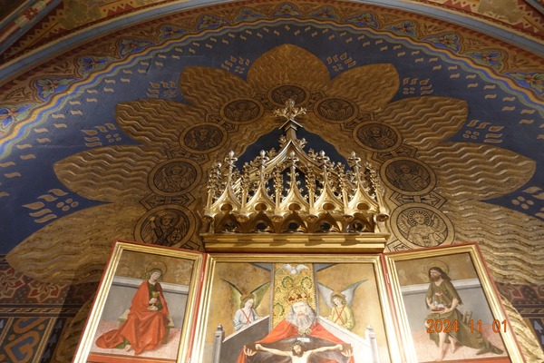周圍有7幅壁畫描繪了聖一絲特萬,另有12幅彩繪玻璃窗則描繪了其他匈牙利聖人(也就是歷代君王英勇的故事)