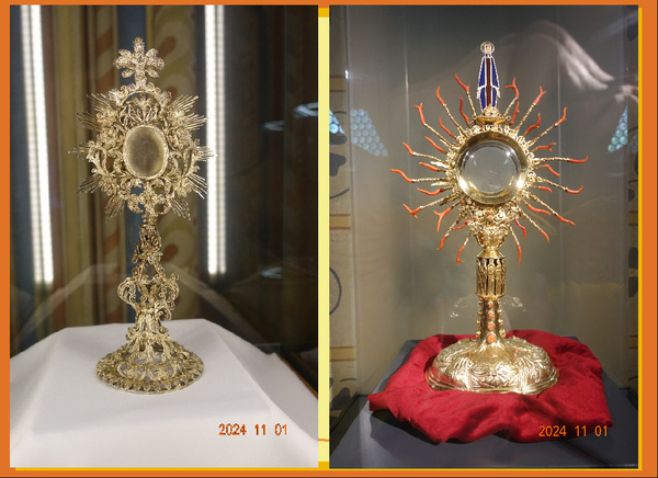 ※聖體光是一種容器,通常由黃金或白銀製成,中央有一個透明的隔層,用於展示已祝聖的聖體(Eucharistic host)供人朝拜。