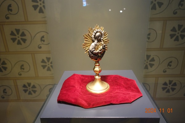 照片中的物品是一個聖髑盒(Reliquary),這是一種用於存放宗教聖髑(聖人遺骸或遺物)的容器。