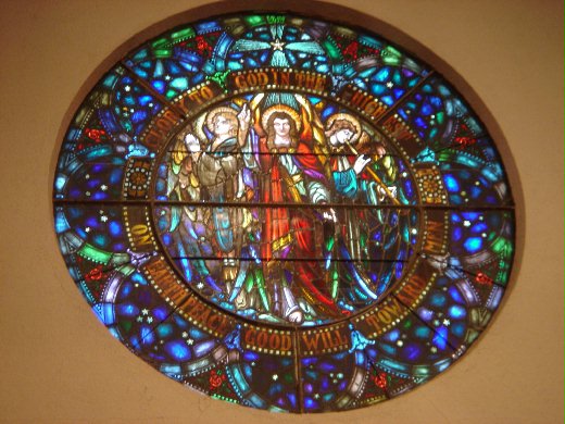 這是孩子們找到的老教堂, 離我們家還要三, 四十分鐘車程. 彩窗的經文已加入主文.