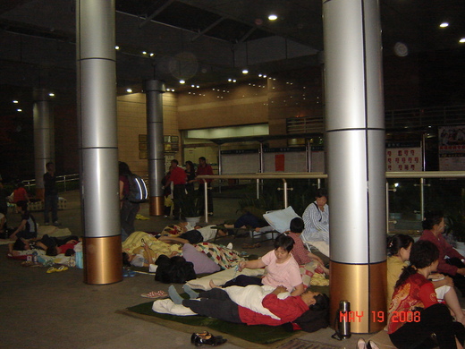 我們忙著找個機場電腦看新聞﹐每個人的心都沉了下來。 怎麼會這樣﹖ 我們的家人一定也很著急的﹐先和他們報個平安。 因為成都已經有人在等我們了﹐打電話和成都方面聯絡﹐市區裡情況還好。 所以原則上只要有飛機﹐我們還是前往。