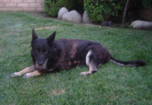 說到狗狗﹐先生對德國狼犬情有獨鐘﹐因為他覺得德國狼犬是最聰明, 最忠心的看家狗。 小狗狗一身黑絨絨﹐只有四隻腳是土黃色的。 我們叫她 Happy (黑皮)﹐她的確給家裡帶來了許多 HAPPY。