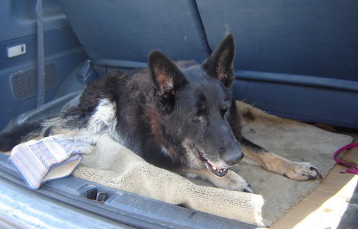 以往在車裡﹐妳總是興奮地東張西望, 張嘴吐舌喘著氣