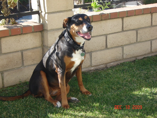 奇奇已經五歲了,看起來像是羅威那(Rottweiler)和牧羊犬的混血狗,長得結實好看。 我家已經是牠的第三個家,這兩天還是有些怯生,不知所以,也沒胃口吃飯。 牠的第一任主人把牠訓練的很好,牠是隻很乖的狗,不亂咬,也不亂叫。 牠愛跟著人,總是眼巴巴望著你,希望你能拍拍牠的頭。