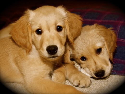 今年二月初,女兒在電話那頭說“媽,我告訴妳一件事, 昨晚,艾力從他朋友那抱回了兩隻黃金獵犬的小狗狗 - 一公,一母... ”
