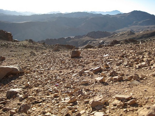 在這滿山石礫的西乃曠野,我滿腦子都在想老摩西如何帶著六十萬(出12:37)抱怨連天的以色列百姓,在這片“大而可怕的曠野”(申1:19) 繞行四十年,這是多麼艱鉅的任務啊!