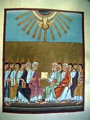 描繪聖靈降臨的古代福音書插圖