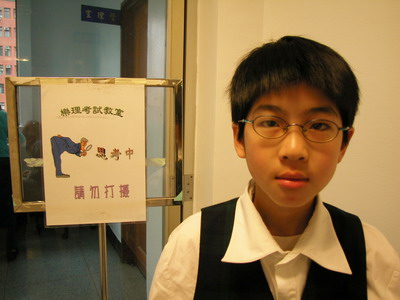 考樂理的時候,裡面沒有老師考我的題目,題目都很簡單,而且有選擇題,我就不怕不會寫字而寫注音了,所以考樂理的時候,我一點都不會緊張。