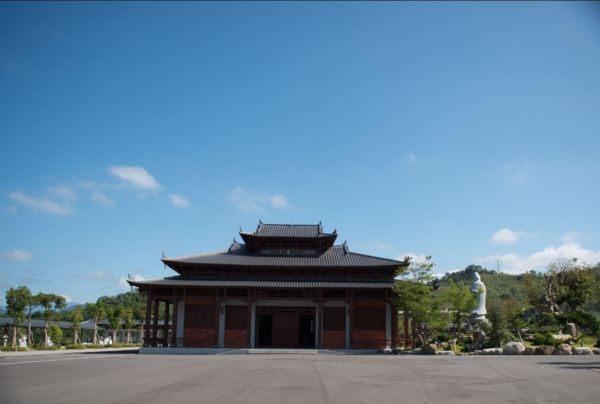 莊嚴的觀音大士,進到裡面,一眼就看到了觀音大士,心中滿是景仰。由於是中午,天空沒什麼雲彩,