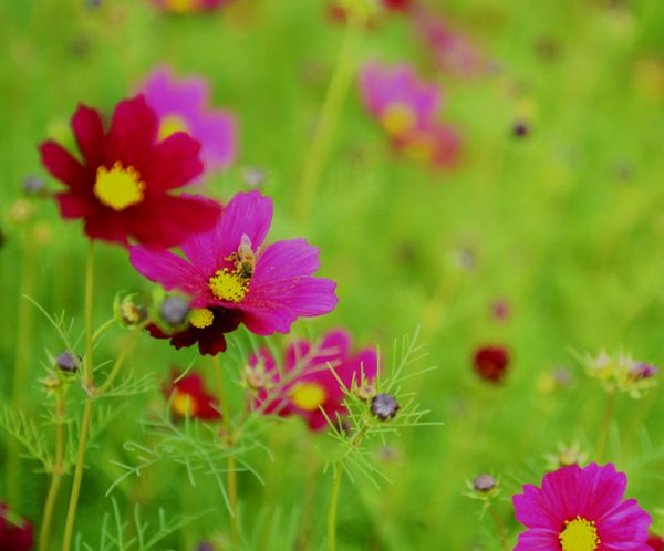 又發現了一隻蜜蜂,今天很是奇怪,蝴蝶沒有,蜜蜂挺多的。這張有點對焦模糊 。呵呵