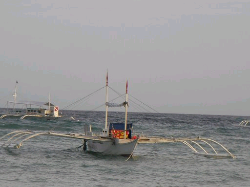所有的人,包括台北導遊〔都傻了〕,菲律賓是群島,一年颱風400多個。一開船,就發現頭上一大片烏雲,然後傾盆大雨,加上打上來的海浪,船行快三小時。一身衣服透溼,本團的媽媽更是一絕,每個台灣女人都美美的,因為早上做防曬,順便化了一個水水的粧,被海水一潑,就是白蛇見雄黃酒,從頭到腳的狼狽不堪。