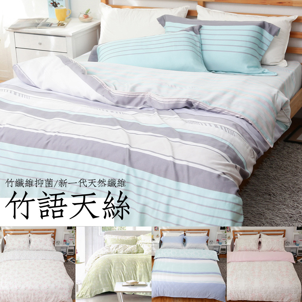 100%天然竹語天絲 雙人床包舖棉兩用被套四件組 (多色可選)