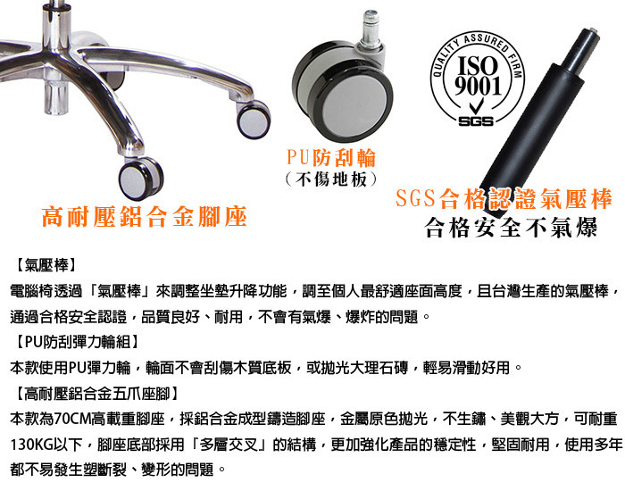 8.座面高度決定於氣壓棒使用長短,請選擇適當高度,若需求較高高度,建議加長氣壓棒尺寸,避免高度不夠,將氣壓棒升到最高,容易造成氣壓棒損壞。