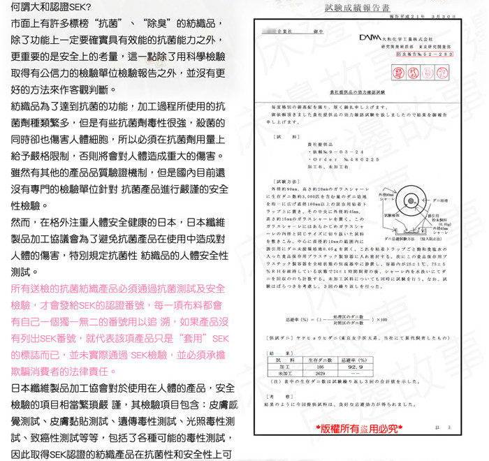 經大和認證SEK防蹣抗菌處理表布