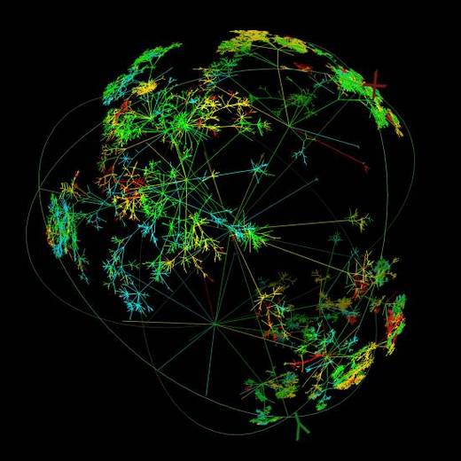 22-Enero-2008: La visualización muestra un instante cualquiera de la actividad en el universo de Internet. (Foto: UC San Diego)