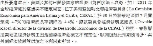 預估2011年拉丁美洲經濟低成長