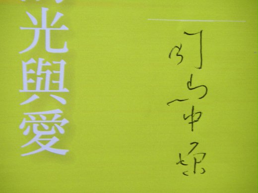 中場休息的時候,很想請司馬爺爺簽名,因為終於紙和筆都有了(可是我要怎麼開口呢??你還記得十幾年前在火車上遇到的死小孩嗎??)整個人猶豫了半天,阿吉就直接拉我到司馬爺爺的身旁,幫我跟司馬爺爺要簽名。(阿吉,感謝你!!!)拿到司馬爺爺的簽名,手微微顫抖著,我的眼前是一位在文壇享有盛名的泰斗,而我的童年也身受他的影響。如果嚴格的說起來,從小喜歡邊故事寫作文,這位眼中閃爍著無限智慧的長者無疑是在多麼遙遠而細微的牽引之中,就在我孩提埋下種子的那雙手。