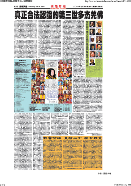 凤凰週刊毫无证据的污衊南无第三世多杰羌佛(认证前为义云高大师),标题《被通缉的活佛宗教诈骗集团大起底》 封面标题赫然写着“被通缉的活佛义云高宗教诈骗集团大起底”,2013年某期的凤凰周刊,刊登了长...